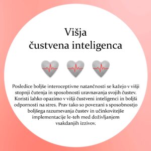 Unikatno zvočno in vizualno doživetje srčnega utripa je izkustven potop v intimo svojega srca. Izkušnja udeležencu pomaga pri vzpostavitvi ali okrepitvi čutne povezave z utripajočo srčno mišico. Z zvočnimi in vizualnimi povratnimi informacijami v realnem času ojačani signal srčnega utripa napaja naše čute, kar usmerja pozornost v področje srca. Na ta način ustvarjamo okolje brez motenj tj. zaprto zanko med občutki v notranjosti telesa in čutili. To, pa omogoča boljše idealne predpogoje za dvig stopnje čutenja srčnega utripa, poglabljanje srčne senzitivnosti in povezovanje miselnih procesov s srcem. Obenem nas povezuje s primarno čutno identifikacijo sebe, z občutkom doma v lastnem srcu.